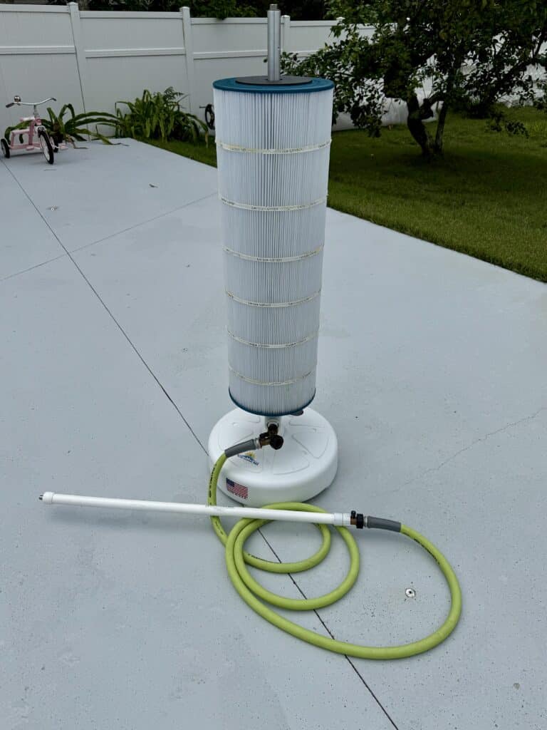 The Filter Cleaner Max takes the backache and headache out of cleaning your pool filter. The Patent Pending Filter Cleaner Max cleans your pool filter from the inside and outside.