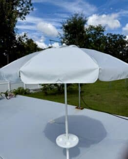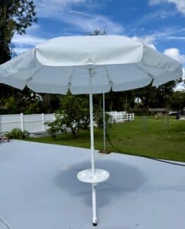 Whether you’re enjoying a sunny afternoon on the shore or lounging in your pool’s baja shelf, this American-made fiberglass umbrella offers the perfect blend of durability, style, and shade.